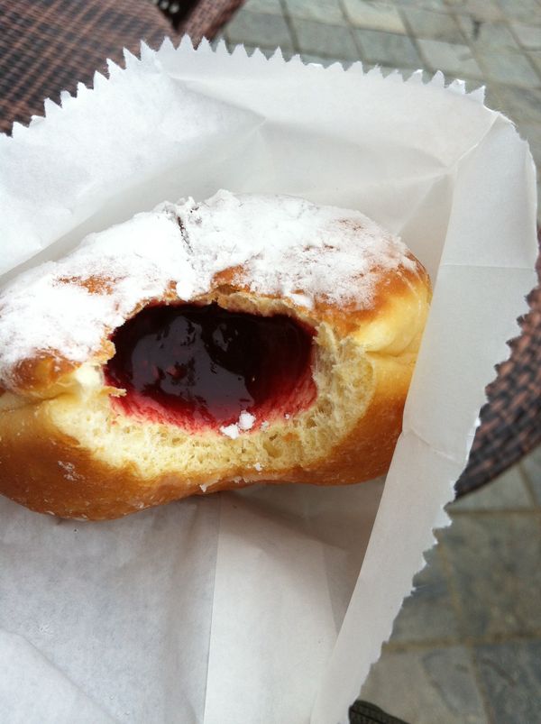 拿完資料,剛開了一班車,要25分鐘後才有下一班,就在昂坪市集逛一下,買了個紅桑莓冬甩,二十元,好吃,不太甜。