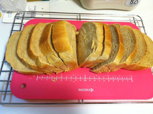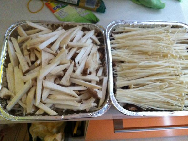可幸天公造美,昨天中午仍是一號風球,除了風大一點之外,一切並無異樣,天清氣朗。於是立即到樓下超市買了金菇、鮮冬菇、雞脾菇、銀芽,回來洗淨切好,放在錫紙盆,洒上海鹽、牛油,帶往燒煮。然後開始做一個英式奶油吐司(因為用黑糖,所以麵包看以麥包)。