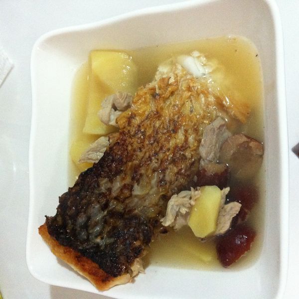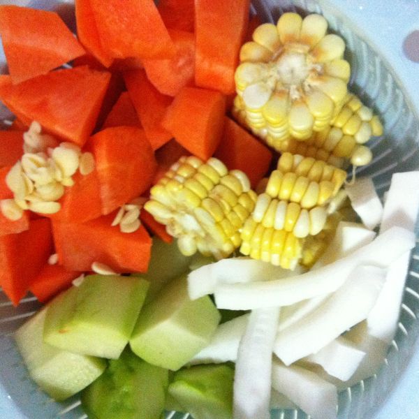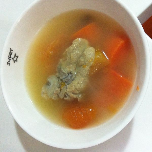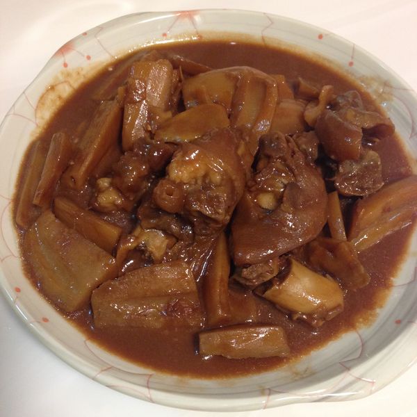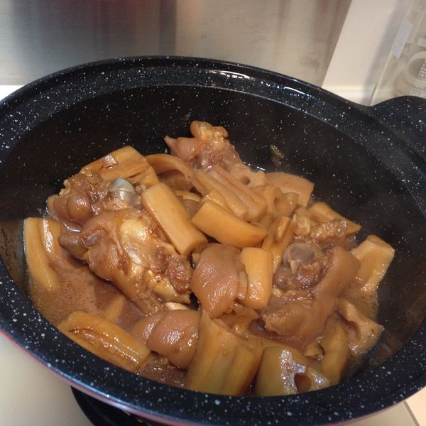 白蘿蔔去皮切片、牛仔骨切開汆水,果皮浸軟,茶葉放在茶葉袋。水滾後放入牛仔骨、果皮、茶葉包、紅辣椒,但煲了一小時,覺得有問題,因為白蘿蔔只煮15-20分鐘,不會入味的,即臨時改變原食譜的做法,加入白蘿蔔一起煲,結果湯不夠蘿蔔甜味,下次買牛腩再試。