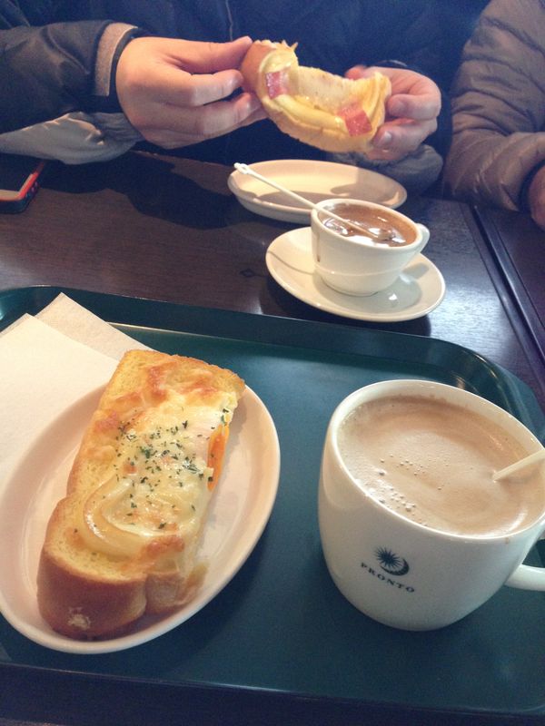 前言說吧!東京第四天的行程如何?首先是吃早餐,這家酒店不包早餐,加上我們一早要去一個地方,所以一早出門。我們坐地鐵到新宿,在附近吃早餐,可惜我們遲了,9時前有很好吃的早餐(因為小姑夫婦十二月才來過),我們來到已經是9點多,只有吃麵包和咖啡(http://www.pronto.co.jp/)。
