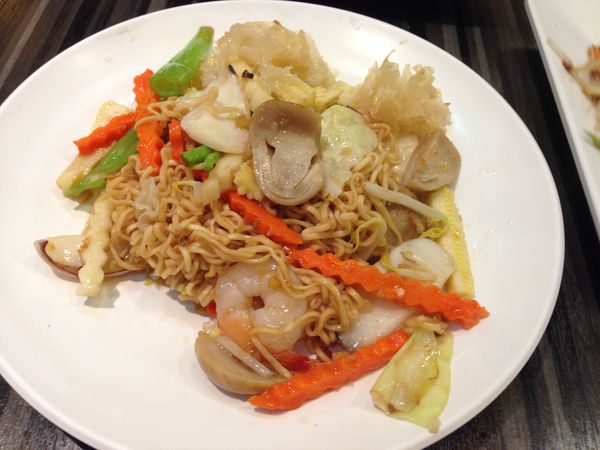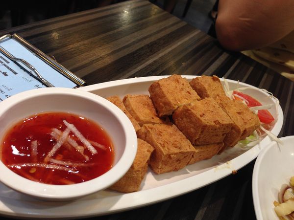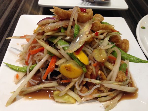 做完按摩已是下午1:45,離開按摩中心步行到Terminal 21來個下午茶,在一家叫Yumsaap的食店吃,點了雜錦媽咪麵、炸豆腐、炒水菜(不知是甚麼菜,吃起來有點像之前吃的苦瓜苗)、涼拌木瓜絲拌香菇炸豬皮、凍菊花水、凍酸梅飲品,只是370泰銖,大約港幣90元。