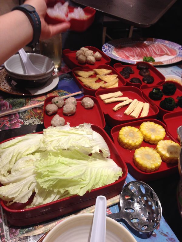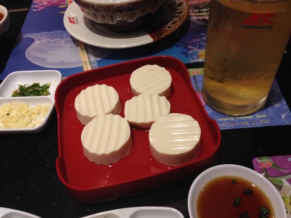 在晚間行動前,當務之急是執拾行李。因為舊同學今晚會帶我們行夜市(河畔新市集)。同學晚上7點來到酒店與我們會合,由於塞車,所以我們坐BTS到Saphan Taksin站(S6),搭免費船到河畔新市集(出BTS步行至Sathorn碼頭)。到達新市集,第一件事是吃晚飯,我與舊同學約法三章,這餐一定由我請,否則不來新市集。晚餐在專吃火鍋的MK Restaurant。