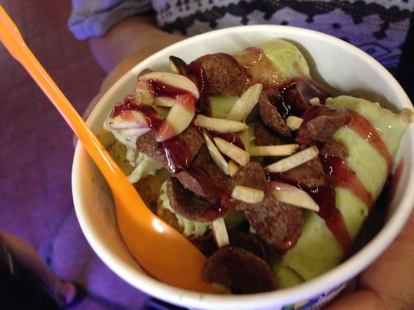 晚餐後,行至摩天輪,同學問我坐不坐摩天輪,一場來到,摩天輪雖小,都試一試,不過坐了差不多十多分鐘。之後又是分組行動,我和花老爺一組,難得舊同學陪伴藍鼠和她的朋友(她們人生路不熟),約定10:30在某地標會合。離開市集前,大家很開心地吃了一個甜品,炒雪糕。