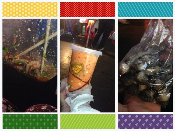 藍鼠朋友本來想繼續逛Central World對面節的Big C Supercenter,可是要從行人天橋過去,最後還是放棄了。但沿路看見很多美食,雖然吃得很飽,但也買了燒尤魚、司蚶、泰式奶茶。
