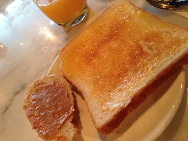 花生醬法包、奶油多(這裏塗麵包的有牛油、練奶、花生醬、果占)。