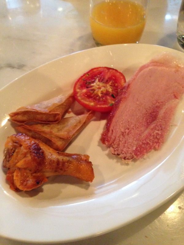 印度烤雞(全部用雞槌)、素菜咖哩角、烤蕃茄、火腿。