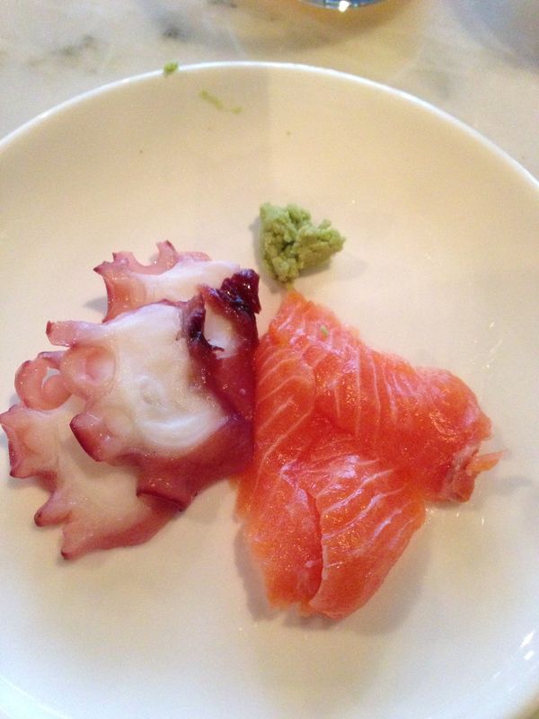 三文魚刺身、八爪魚,另外還有白立魚和醋漬青魚,款式只有四款,不算多,還有壽司卷。