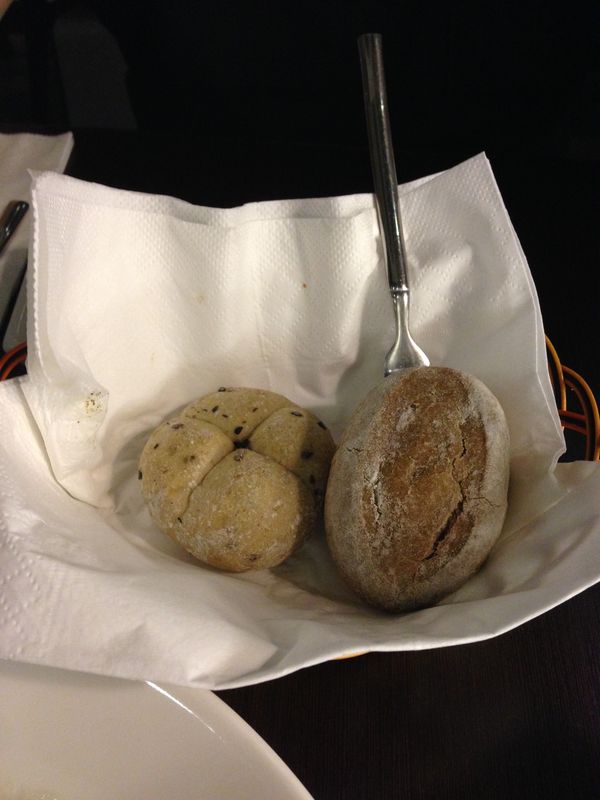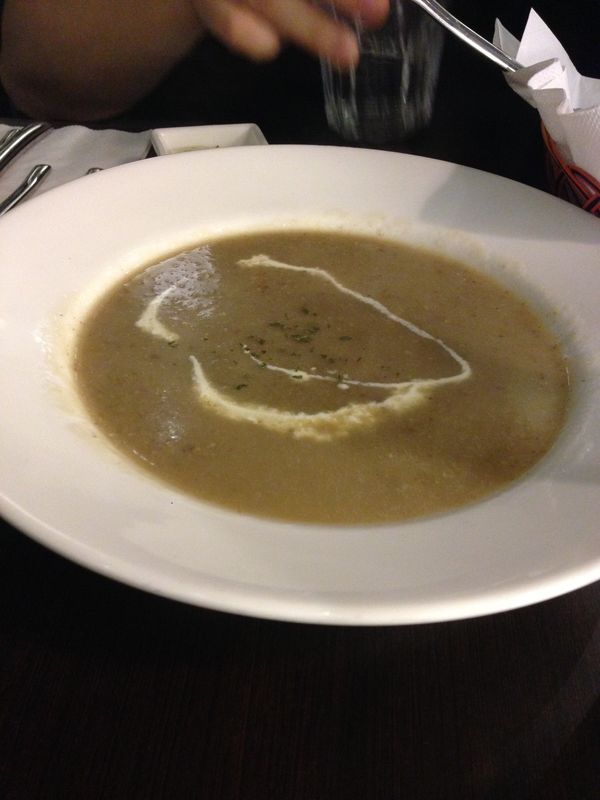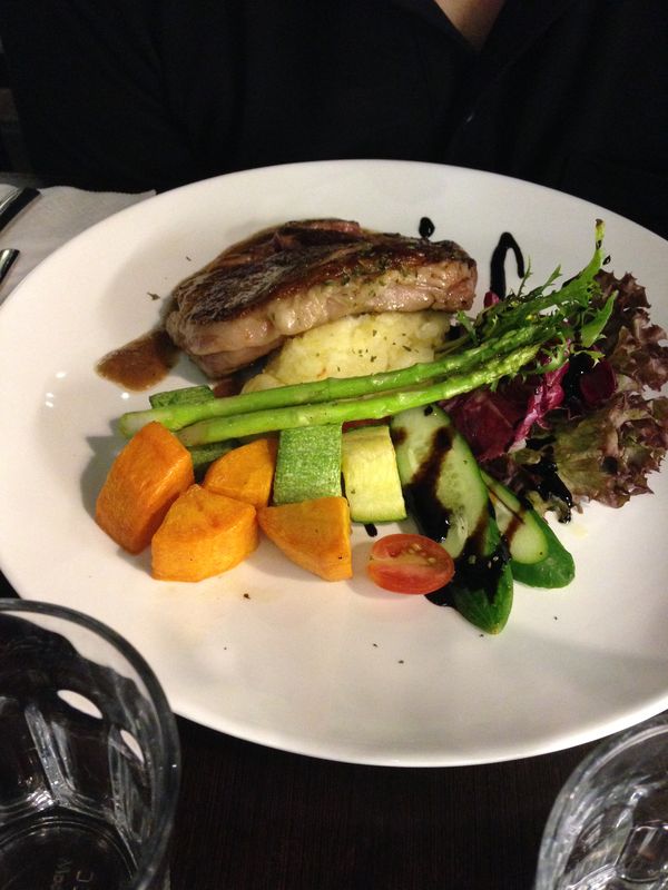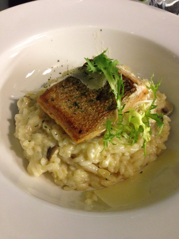 花老爺的牛扒和我的三文魚意大利飯,花老爺的牛扒有筋,所以扣了分。