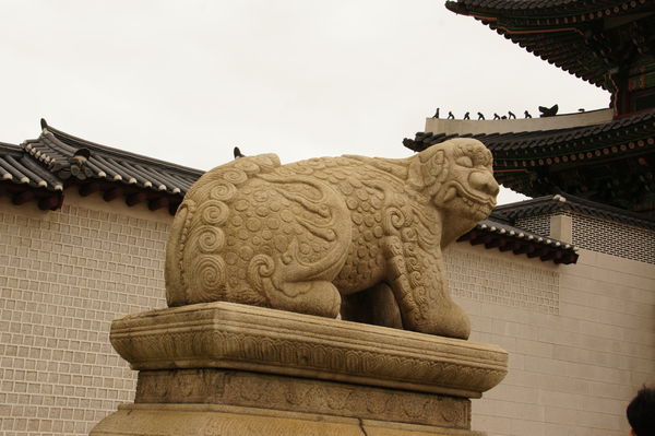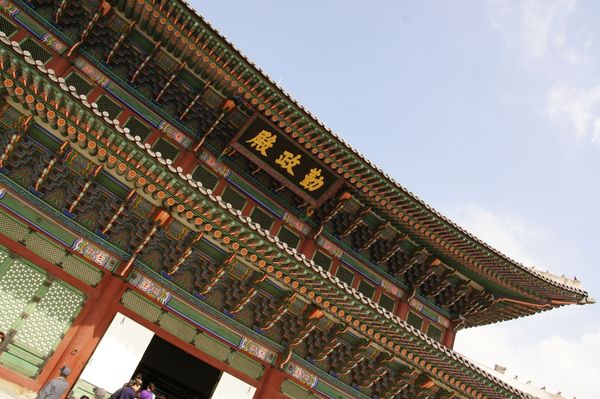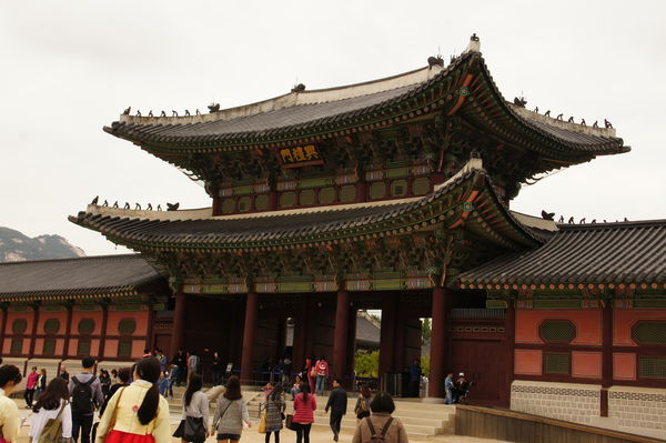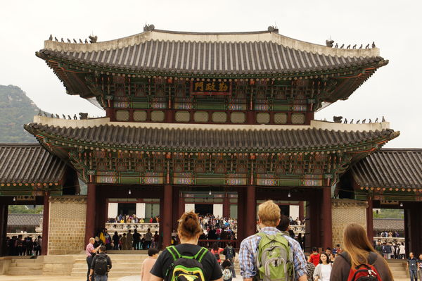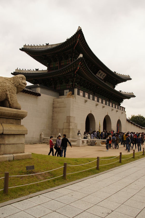 吃得滿頭大汗,再慢慢步行往景福宮(http://big5chinese.visitkorea.or.kr/cht/SI/SI_CH_2_1_2_1.jsp?gotoPage=2&category=A02010100%2CA02010200%2CA02010300&areaCode=&recommCid=324506&cid=332517),遇著黃金周,人多到不得了。