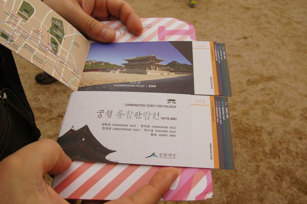 入場票3000韓元,但在購票處排隊時,看到票價中有套票發售,套票是10000韓元(約70多港幣),可以於一個月內到首爾的五個古宮(包括景福宮、昌德宮、德壽宮、昌慶宮、宗廟)遊覽。於是與花老爺商量,既然我們沒有特別安排其他行程,不如來一次古宮之旅吧!於是就買了兩本套票。哈哈!我們的行為是不是有點瘋了?