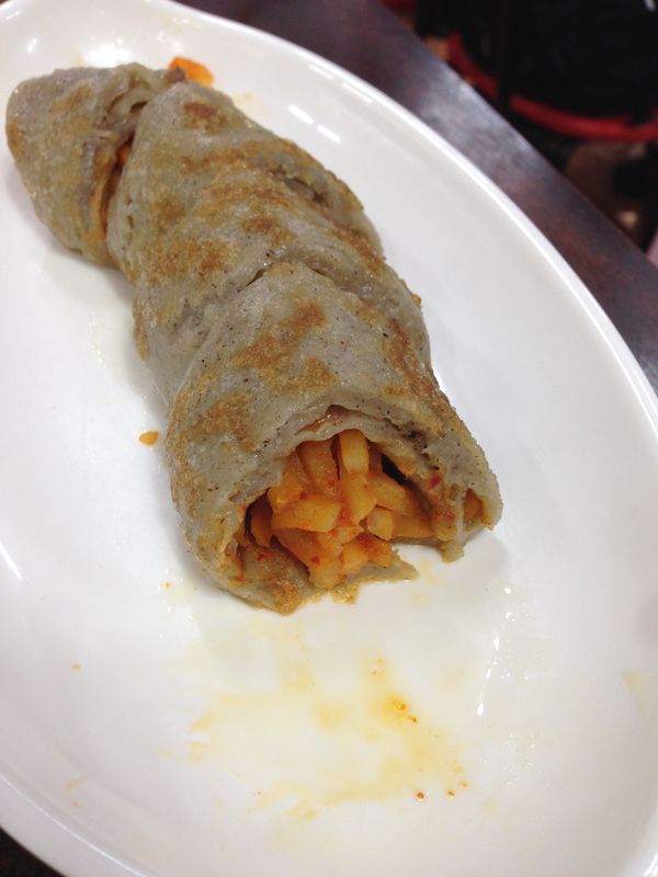 隨便入一間,吃到很好味的東西,我不吃蔥,但這個蔥餅,完全沒有蔥味,蕎麥餅卷裏面蘿蔔做的泡菜,只有微辣,湯麵麵質好吃。意外驚喜呀!