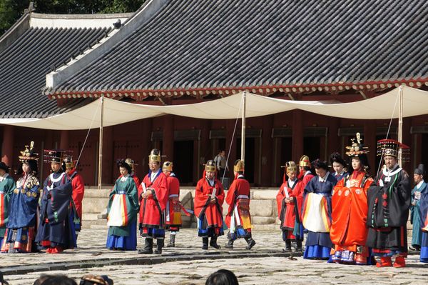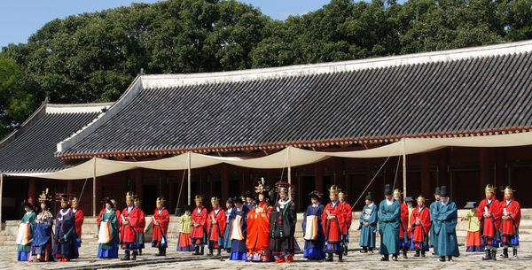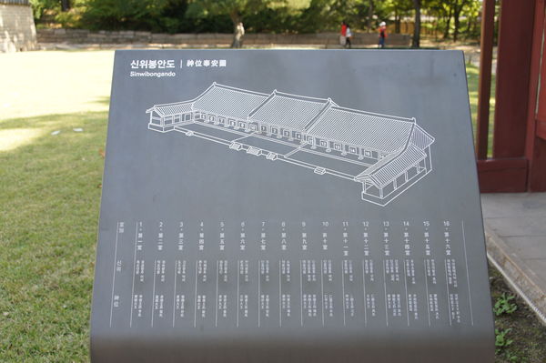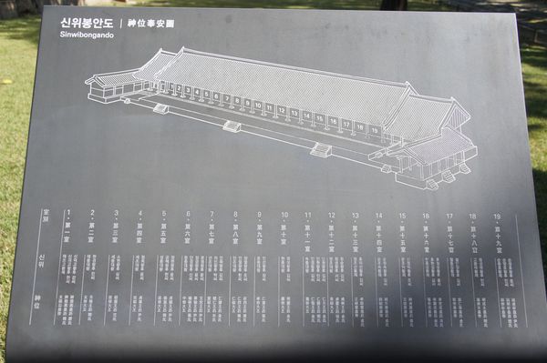 正殿—一共有19個神室。供奉朝鮮太祖、現任國王的前四代祖先、歷代國王中有功德的國王和王后的神主。