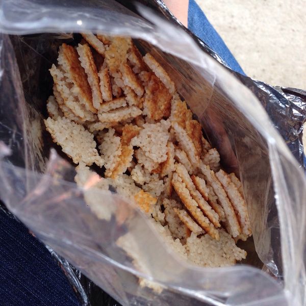 世子嬪婚禮式在2時舉行,跑出去吃東西,進來要再購入場券。聰明的我再拿出這包飯焦,在自動飲品販賣機買個飲料,這就是我們的午餐啊!