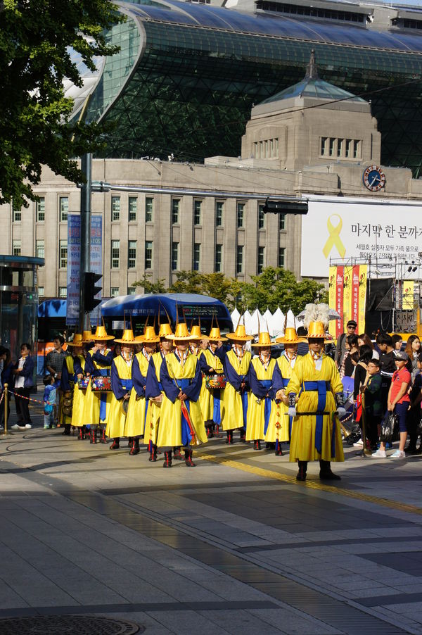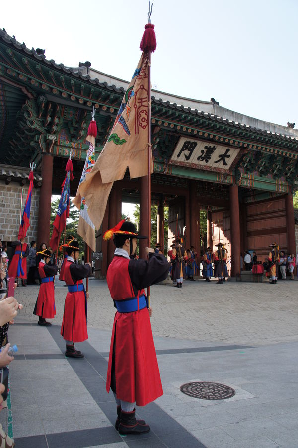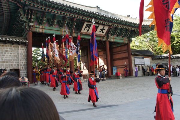 看完宗廟的節目,再拍個照片,已經時下午2時45分。從宗廟到德壽宮,坐地鐵不知道車程多久,為了不想錯過德壽宮的換兵儀式,又怕黃金周人多佔不到好位置,所以我們選擇坐的士到德壽宮,車費是4900韓元。還好去到也不算太多人,換兵儀式大概15-20分鐘左右。