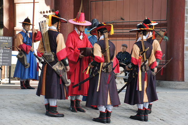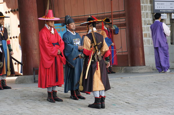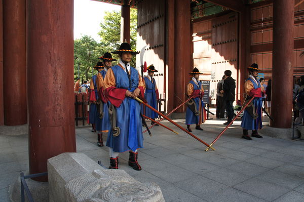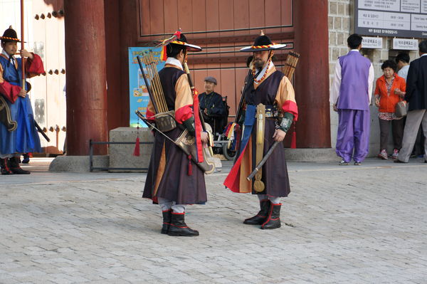 換兵儀式中有武術表演的,可是相機沒有電拍不到,不過我可以專心欣賞。事實相片中看到他們拿的兵器很長,拿來耍弄,感覺像看黃飛鴻片,拿著長長的搭棚竹一樣,希望將來有機會再看,或者你們去韓國旅行時拍到也說不定。