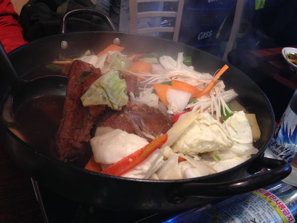 這天一直到參觀完德壽宮,還聽了一個音樂會,才去吃晚飯。簡簡單單吃醬油燉豬排骨,冷麵和燒肉,還有啤酒便起程回酒店。