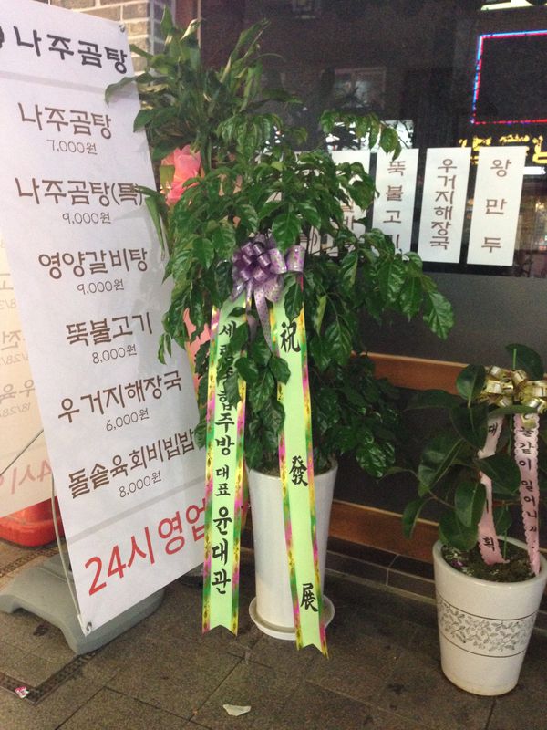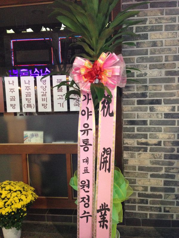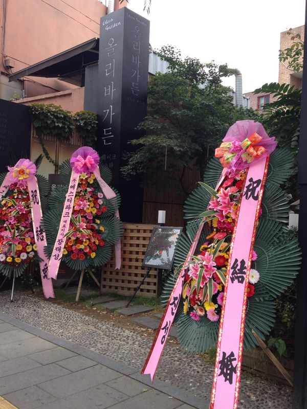 在往地鐵站途中,看到韓國文化的另一面,花籃!我們在香港見慣別人開張送大盆植物、結婚的多用漂亮花束,這裏嘛!全部都簡簡單單的。