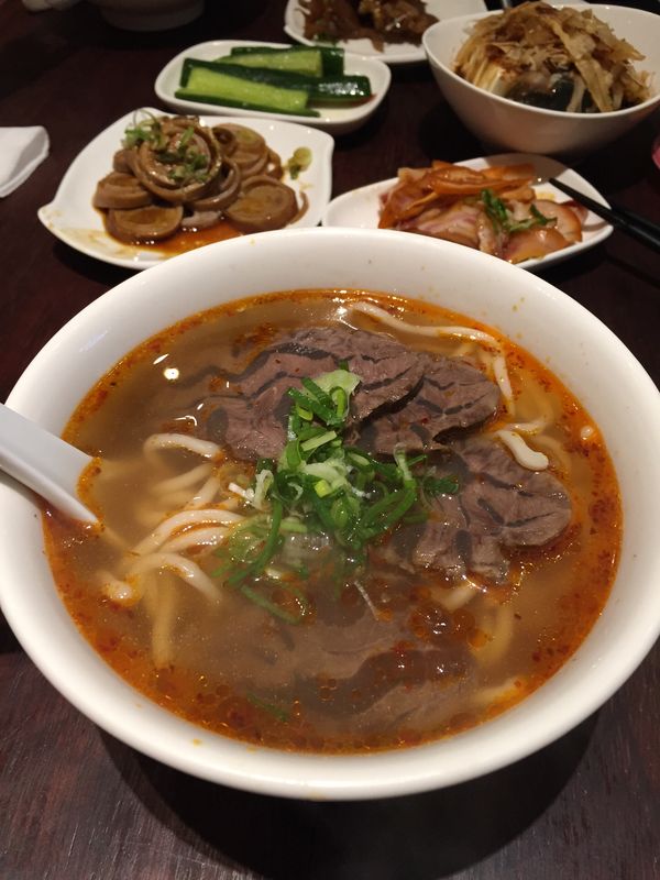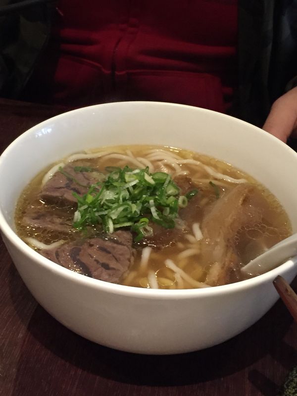 這家牛肉麵店叫「牛屋」,是2012年我帶姨甥女來台灣旅行時去過的,那次我們閒日去,店裏沒太多人。這次可能是假期,排隊也排了大概半個小時,這裏的牛肉麵也不錯,之前在九份吃過九份的牛肉麵也很好吃,這裏的清湯比較好喝。