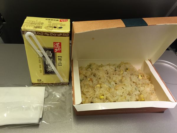 然後會合司機就驅車往機場,短短的五天行很快就過去了,出到機場先在那裏免稅店逛逛,然後吃點東西。差不多八點吃的飛機餐,是炒飯和烏龍茶,這個份量剛剛好。剩下的零錢就放進「零錢布施」吧!