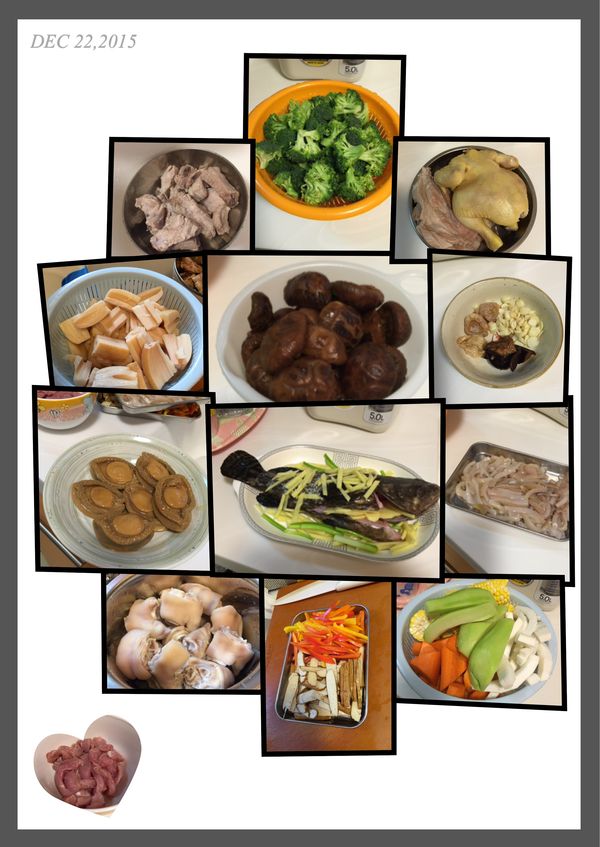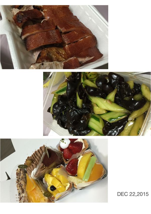 家姐買嘅乳豬、奶奶整嘅木耳青瓜、姑仔買嘅飯後甜品,所以唔煮湯丸