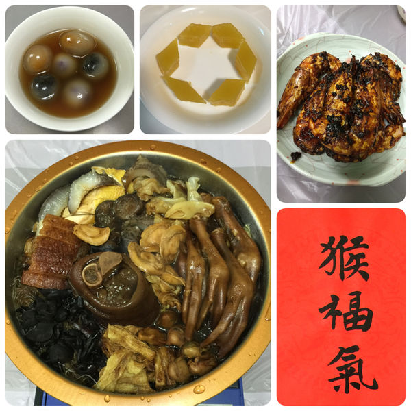 昨晚在家中團年,訂了小南國的盆菜,加上姑仔煎的大蝦碌,飯後吃水晶湯丸和馬蹄糕
